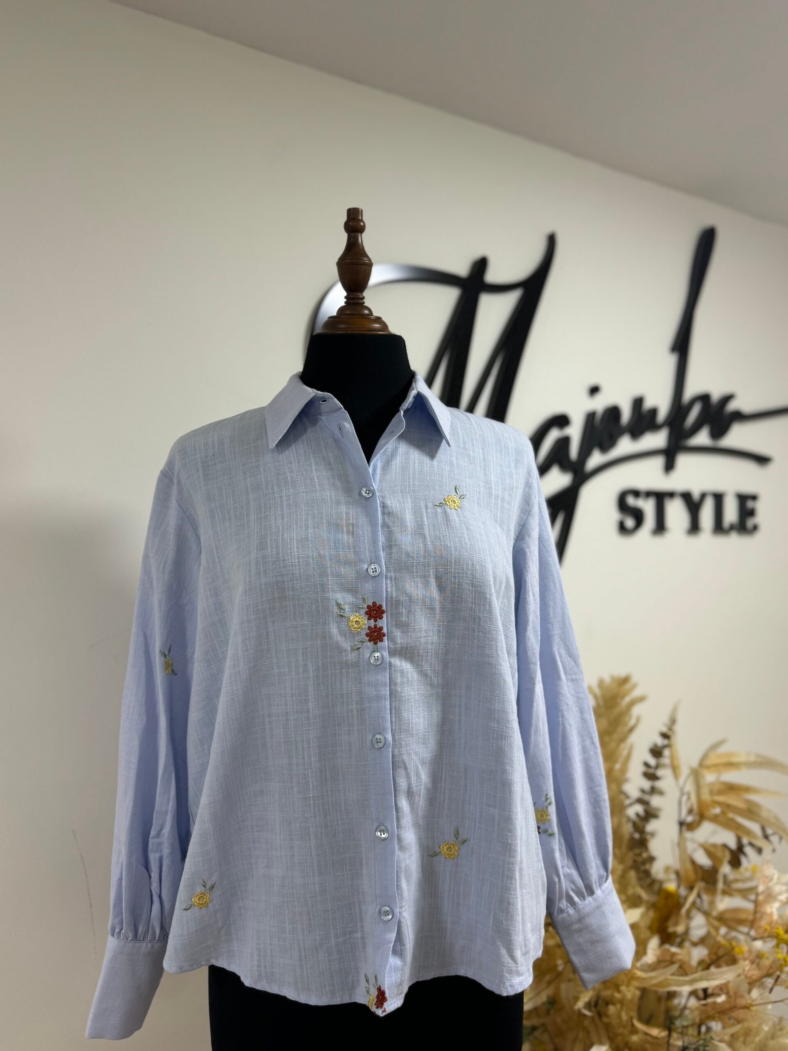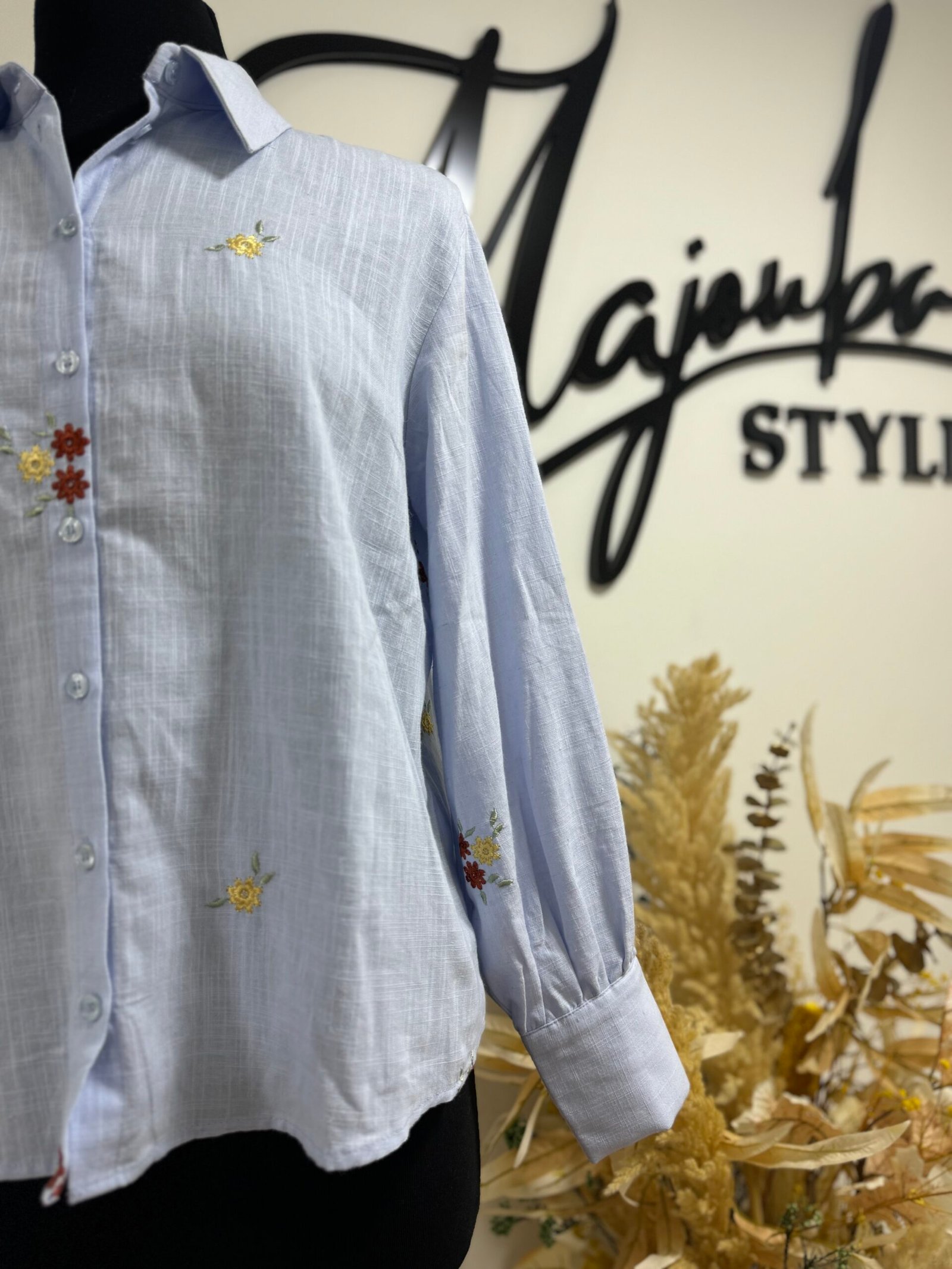 Élégante et raffinée, cette chemise prune séduit par ses délicates broderies florales blanches et jaunes, subtilement disposées sur le devant et les manches. Confectionnée dans un tissu léger et agréable à porter, elle combine confort et féminité. Son col classique et sa coupe droite en font une pièce polyvalente, parfaite aussi bien pour un look de bureau chic que pour une sortie décontractée.