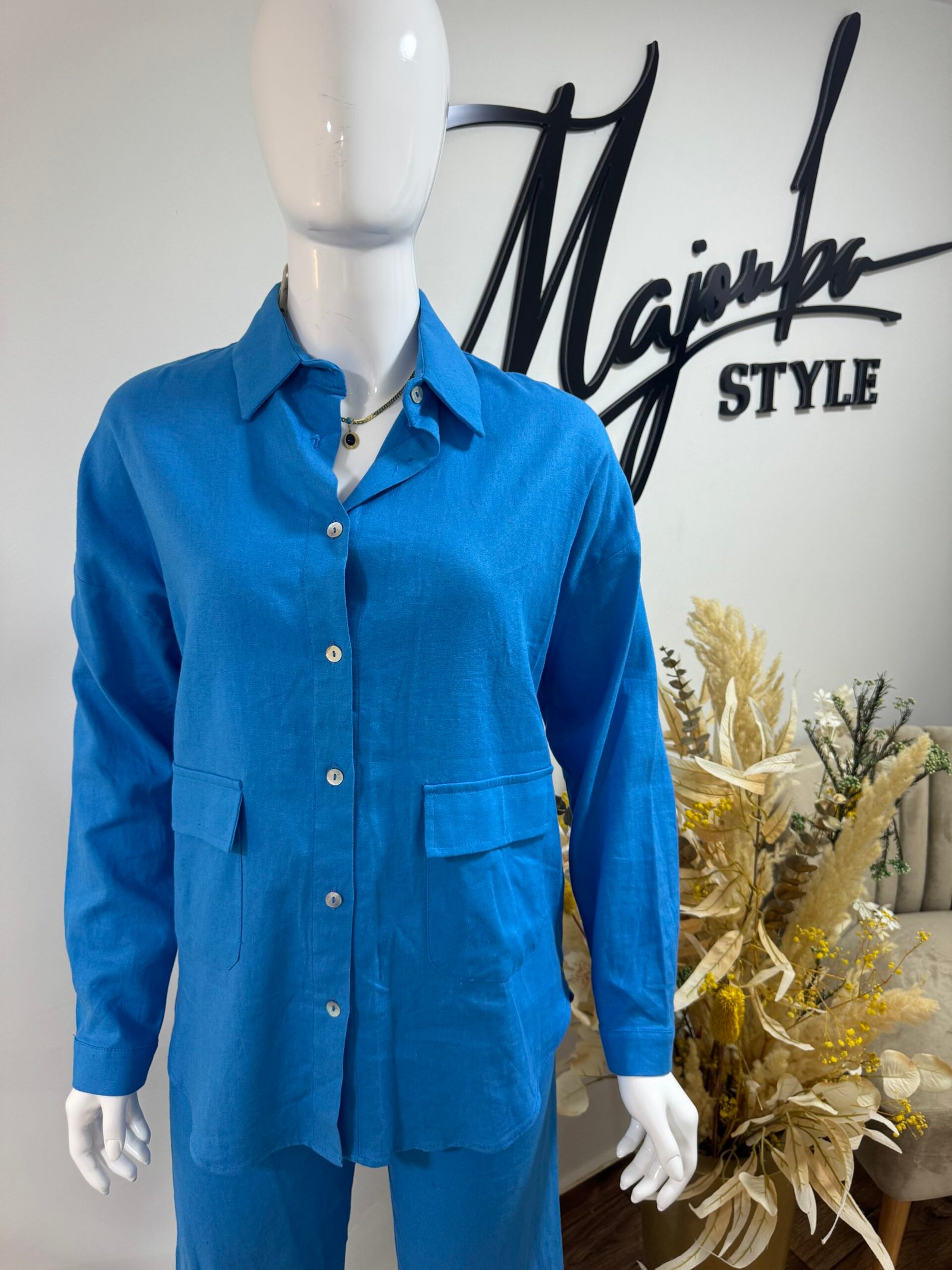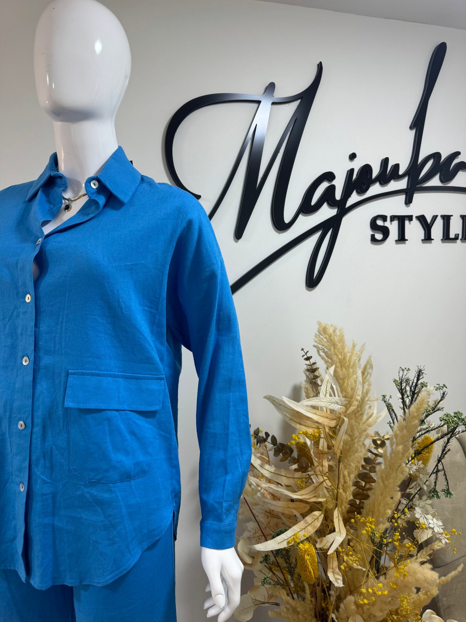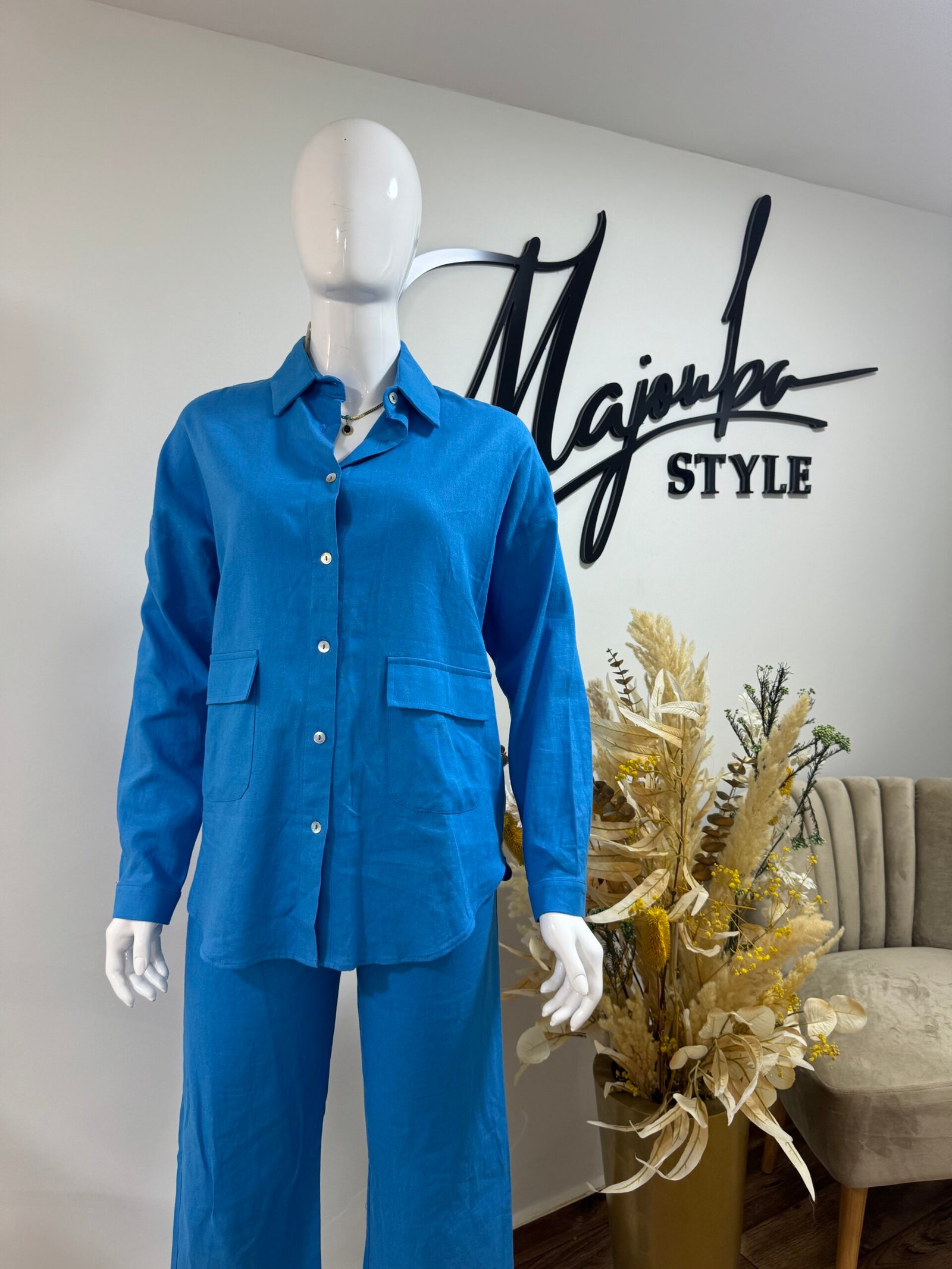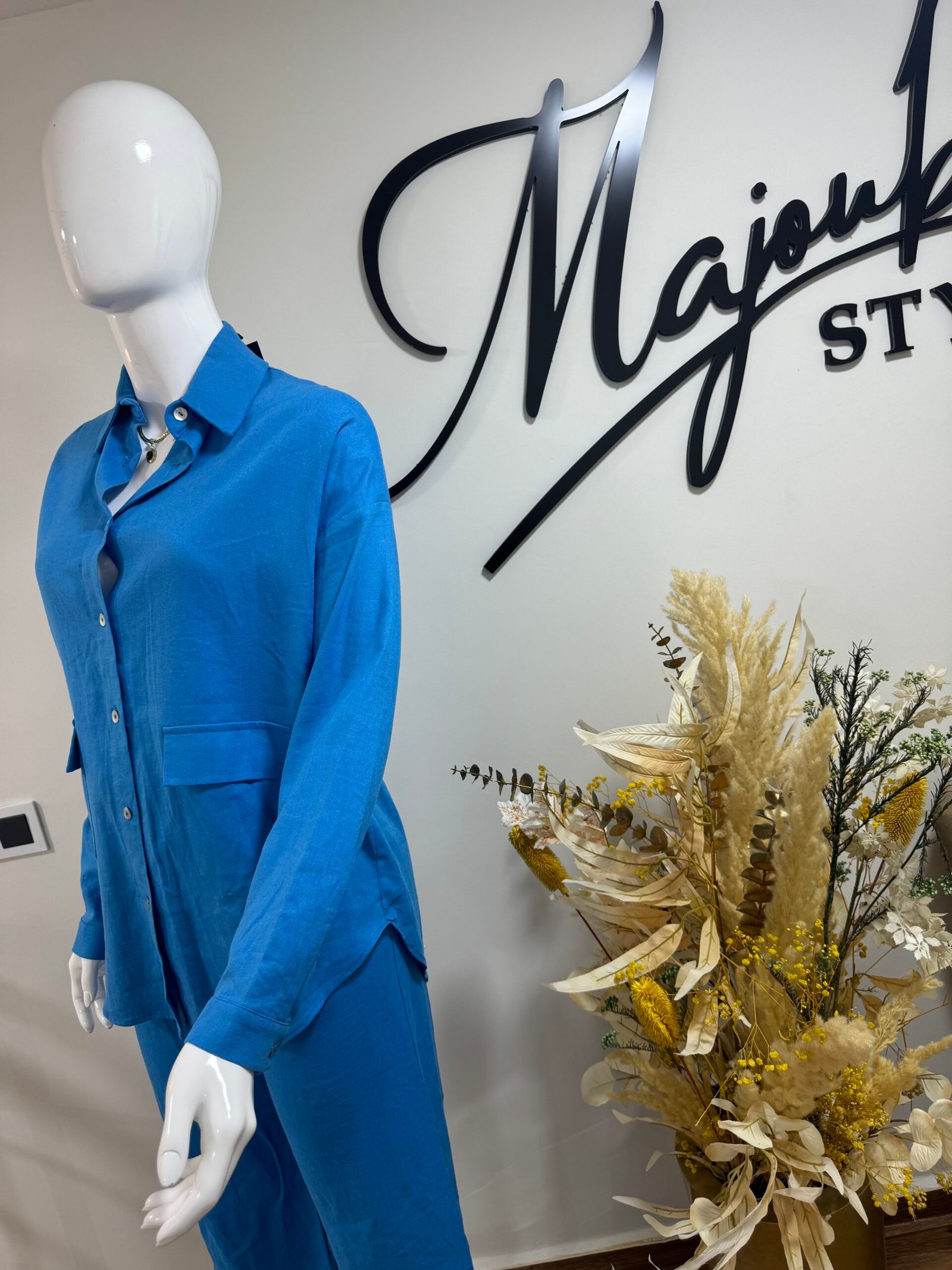 Un ensemble bleu cache fesses fluide, raffiné, pensé pour sublimer vos journées. Parfait pour vos sorties printanières avec style et légèreté.