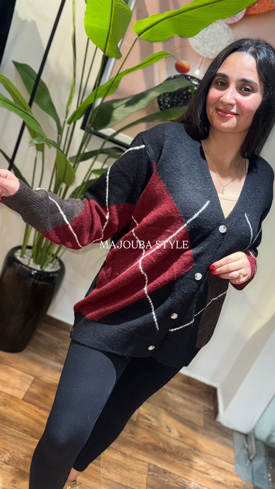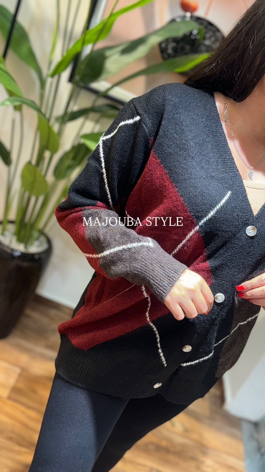 Ce gilet bordeaux et noir, parfait pour les journées fraîches