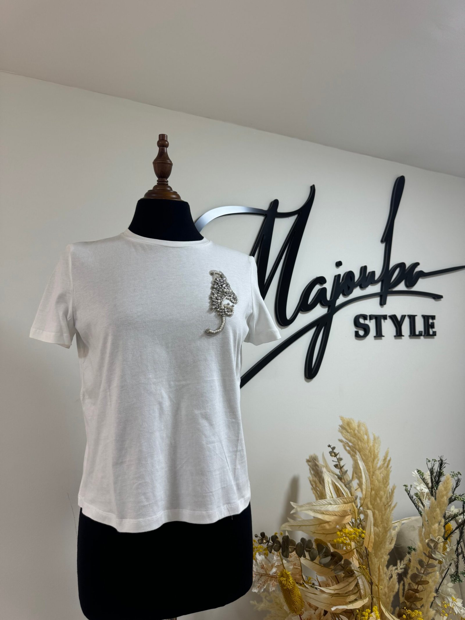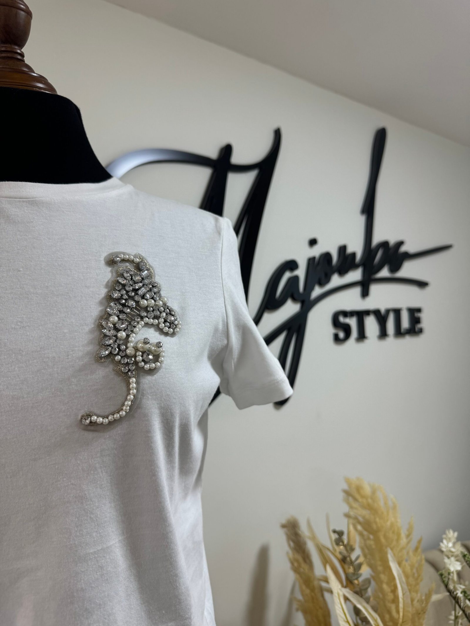 Pull blanc élégant, orné de délicats détails en perles. Doux, chic et raffiné, il apporte une touche de féminité et de sophistication à ton look.