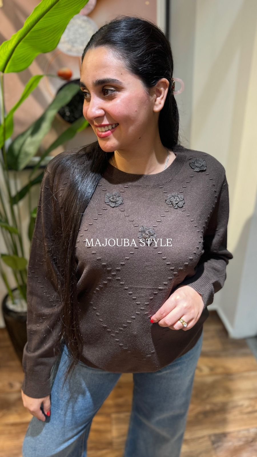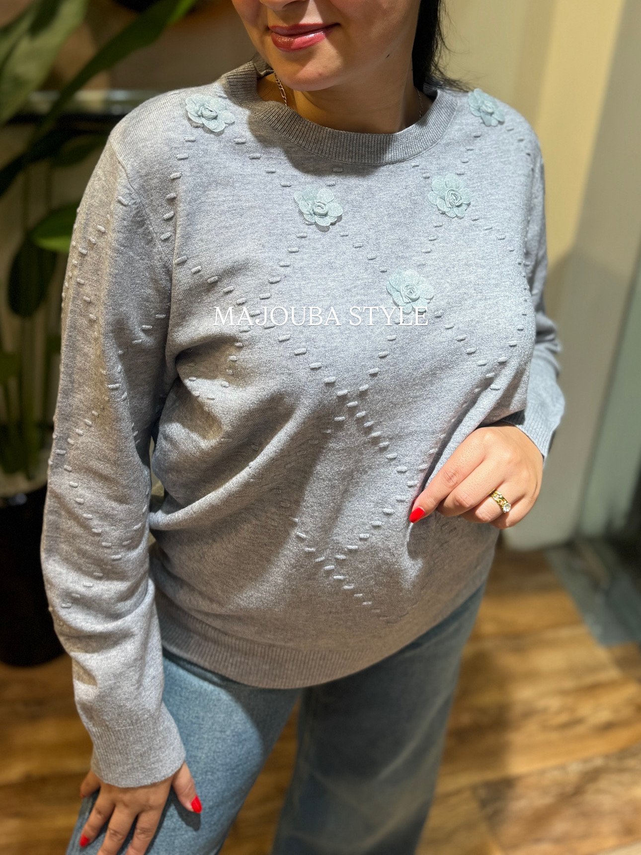 Pull doux En Maille à fleurs en relief, parfait pour un look chic et féminin 🌷