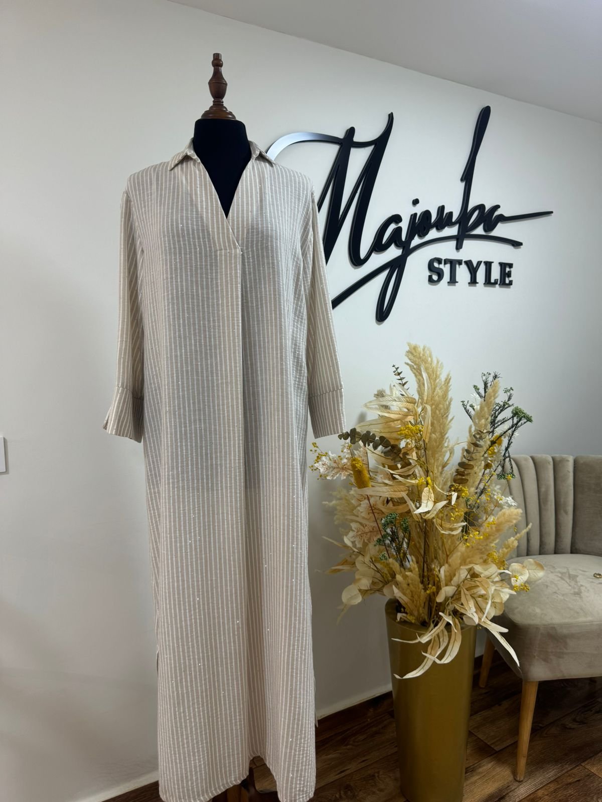 Robes longues rayées avec de délicats détails perlés, parfaites pour allier élégance et modernité. Un look chic, léger et tendance… idéal pour toutes vos occasions.